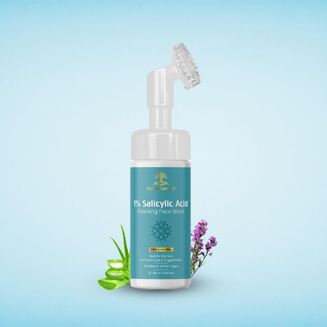 Introducing the Veda Harvest 1% Salicylic Acid Face Wash, a specially formulated solution to tackle acne and minimize open pores. This 150 ml product is designed to cleanse your skin gently while addressing common concerns such as breakouts and enlarged pores.The star ingredient in this face wash is salicylic acid, renowned for its exfoliating properties. It effectively removes excess oil, dirt, and dead skin cells from the surface, unclogging pores and preventing future breakouts. With a 1% concentration of salicylic acid, this face wash strikes a perfect balance between effectiveness and gentleness, making it suitable for daily use without causing excessive dryness or irritation.Regular use of the Veda Harvest 1% Salicylic Acid Face Wash leads to a clearer and more balanced complexion. By deeply cleansing the skin and removing impurities, it helps reduce the appearance of acne breakouts and refines the skin’s texture. The exfoliating action of salicylic acid also minimizes the look of open pores, promoting a smoother and more even skin tone.This face wash is a valuable addition to any skincare routine, offering a proactive approach to managing acne and addressing pore concerns. Its gentle yet effective formula ensures thorough cleansing without stripping the skin of essential moisture. Suitable for all skin types, including oily, combination, and acne-prone skin, the Veda Harvest 1% Salicylic Acid Face Wash is a versatile choice.To use the face wash, wet your face with lukewarm water and apply a small amount to your fingertips. Massage it gently onto your skin, paying attention to areas prone to breakouts or enlarged pores. Rinse thoroughly with water and pat your skin dry. For optimal results, incorporate this face wash into your skincare routine twice daily.Embrace the benefits of the Veda Harvest 1% Salicylic Acid Face Wash and experience a clearer, more refined complexion. With regular use, you can enjoy the confidence that comes with healthy, balanced skin. Take control of your skincare journey with this effective and gentle face wash.