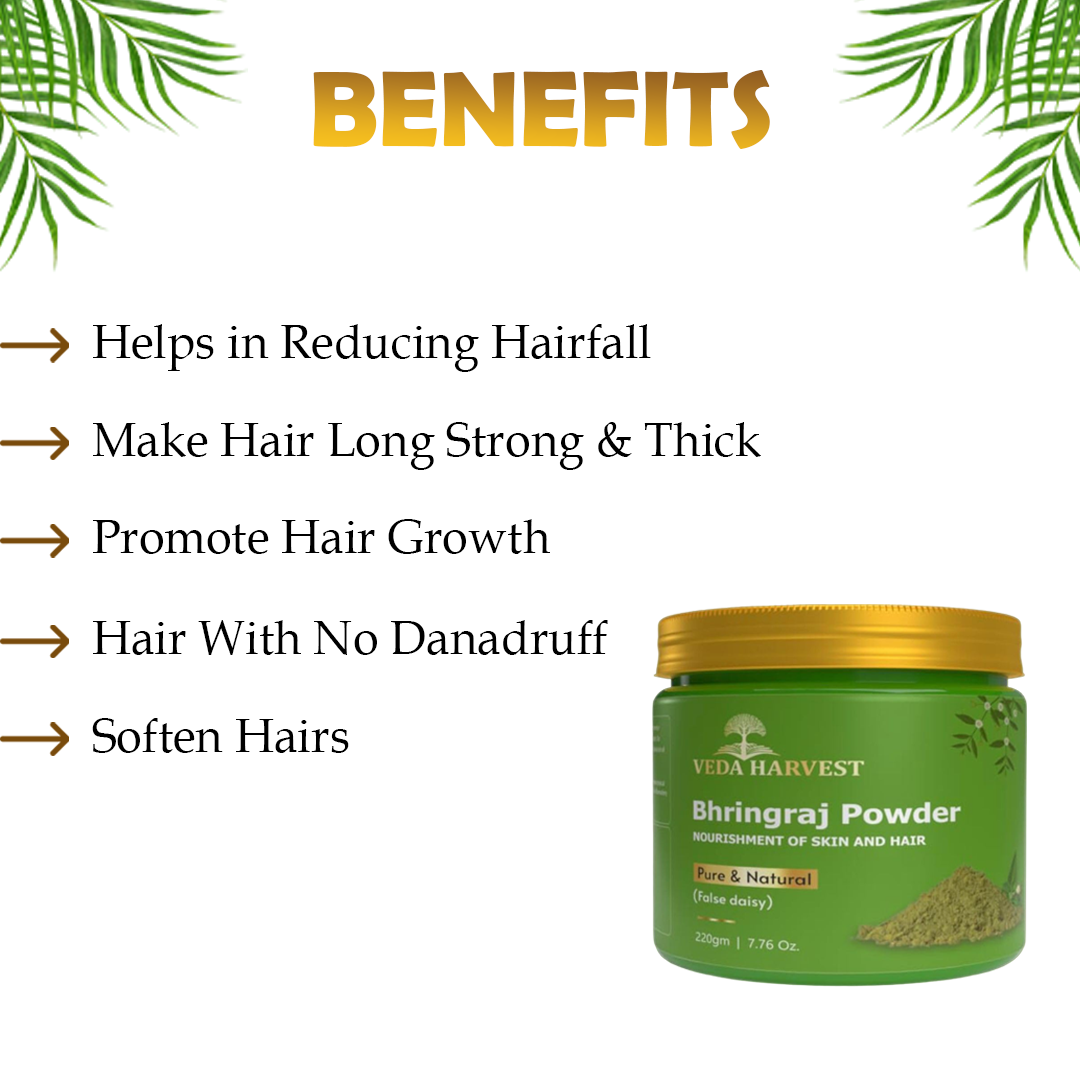 Elevate your hair care routine with the VEDA HARVEST Bhringraj Powder, infused with the natural goodness of Bhringraj. This isn’t just hair care; it’s an indulgent ritual that revitalizes your hair and invigorates your scalp.